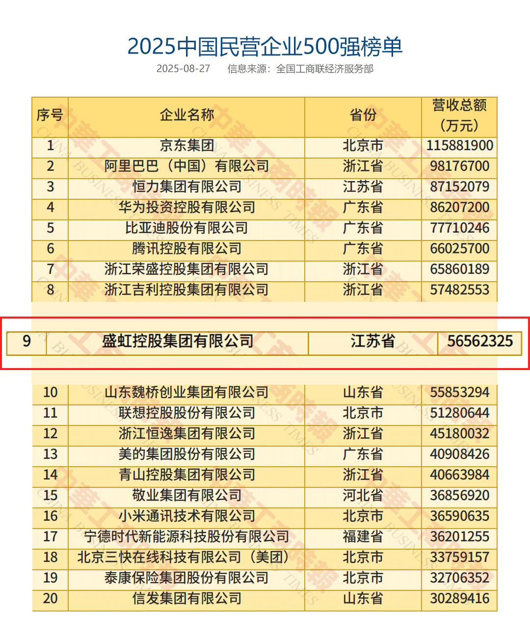 中国民营企业500强榜单是由全国工商联在综合调研上规模民营企业的基础上,以营业收入总额为参考指标发布的排行榜,被誉为中国民营经济发展的风向标、指南针。